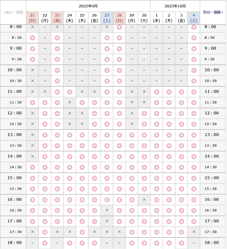 2025年9月21日7:45現在空き状況